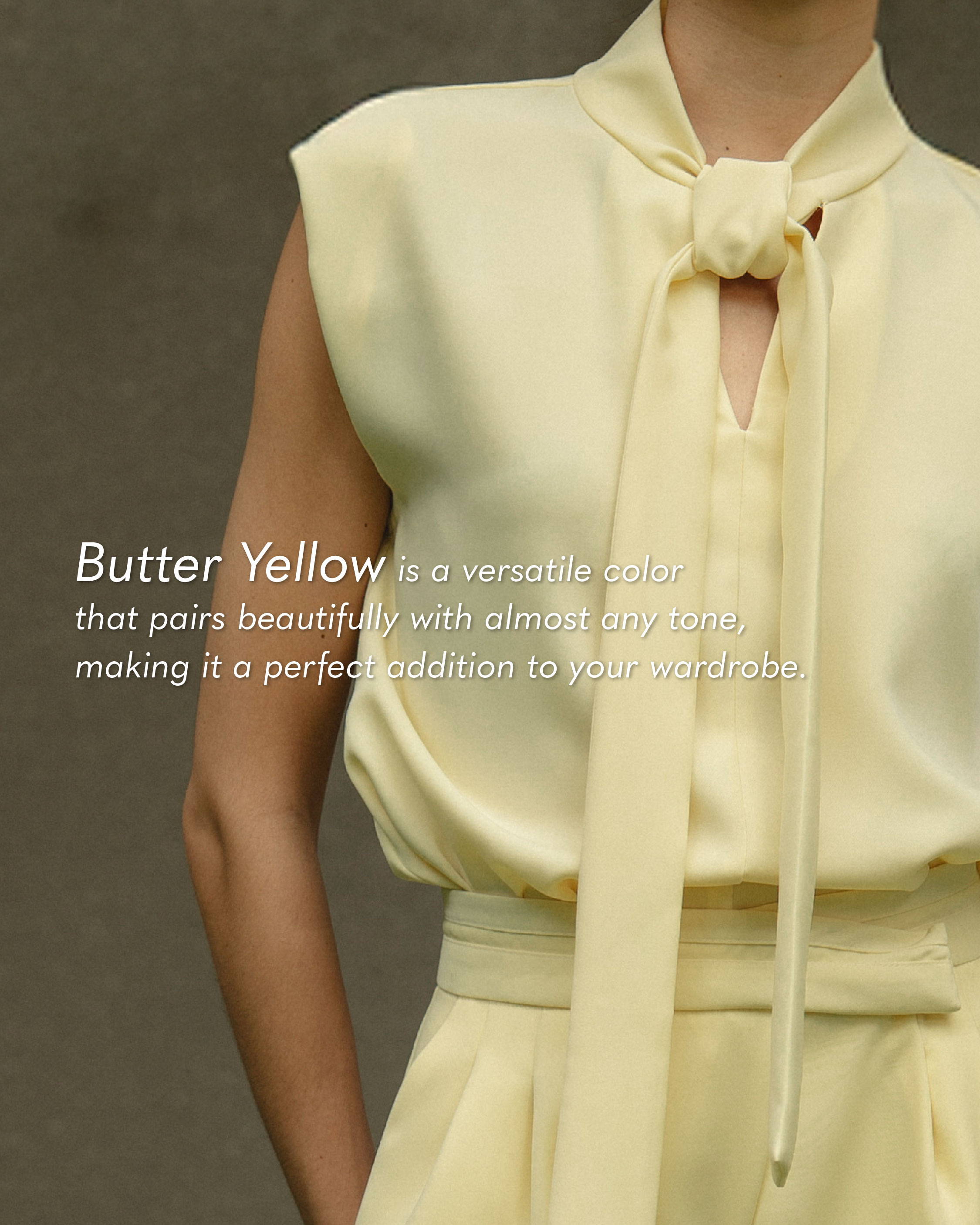 This season, Butter Yellow has become one of the most charming colors to wear, combining warmth and softness that instantly lifts any look. It brings a sense of sunshine without being too bright, making it easy to style for both casual and refined occasions. Butter Yellow is a color that feels soft, cheerful, and easy to wear.