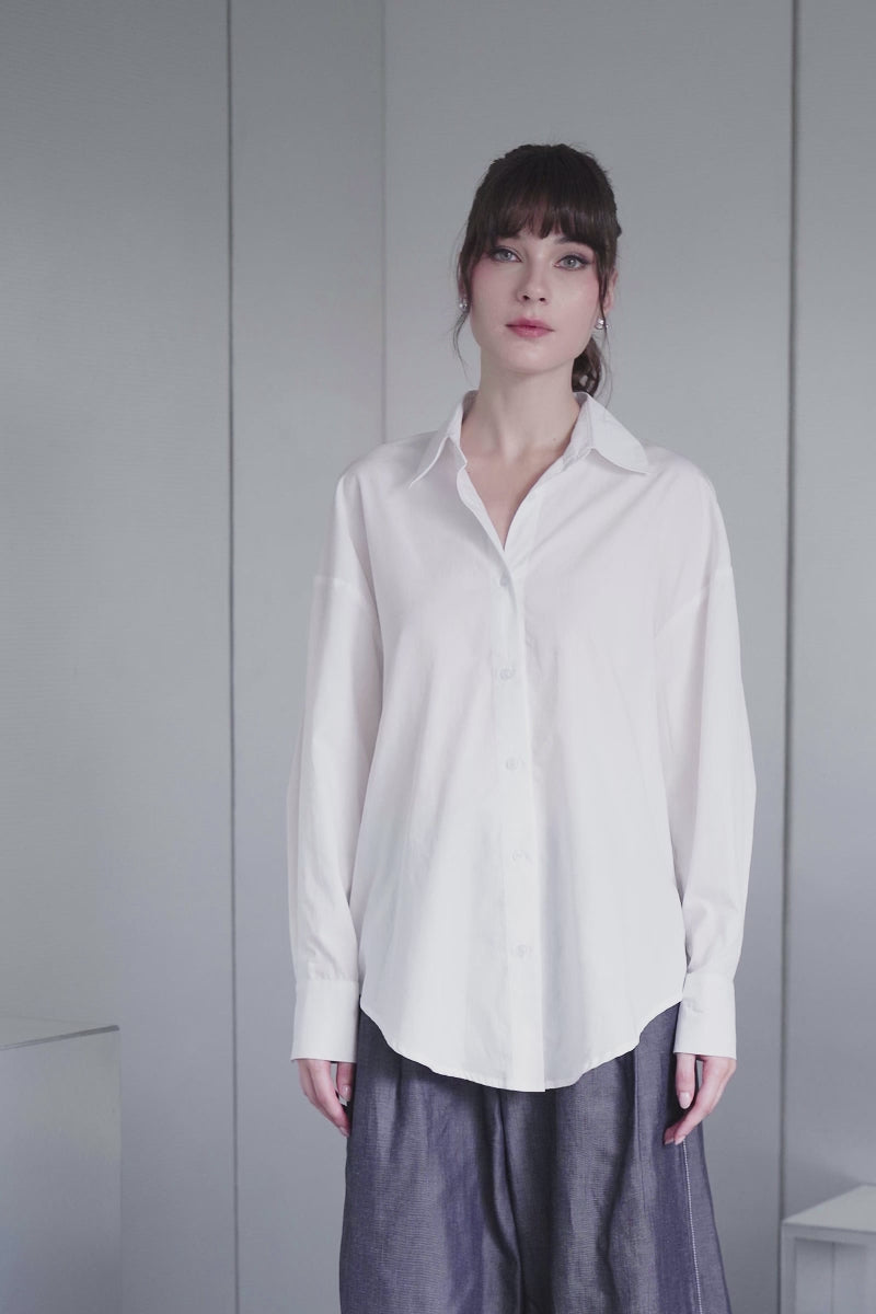 A simple and elegant wardrobe essential that you can rely on every day, our Backless Shirt fosters a feeling of calm and confident nonchalance thanks to its relaxed silhouette. Cut from Lyco Poplin fabric, this classic button-up drapes so well and is accentuated with a backless detail that serves as a surprising twist. Pair yours with your favourite jeans or a tailored piece.