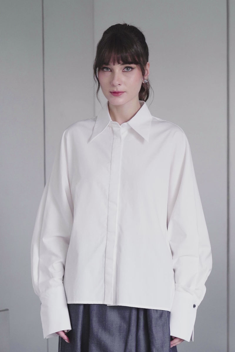 A clean, tailored shirt perfect for everyday wear, this classic piece looks just as good tucked into a pair of tailored trousers as it does layered under a vest. For the design of this shirt, Onycha upgrades the classic men's shirt by adding bold batwing sleeves. The button-up front with classic collars and cuffs is further accentuated with Onycha’s signature buttons.