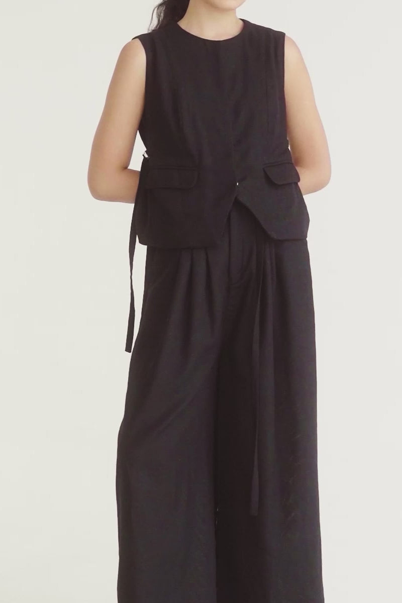 Characterized by elegance and modernity, our Buckle 15 Natural Vest is both minimal and refined, allowing you to dress it up with sharp tailoring or wear it casually with denim. Woven from cotton, recycled polyester, and linen, the full lining ensures it feels smooth against the skin. Tailored with flap pockets on the sides, it features a tonal buckled belt to cinch the waist. Wear yours with sharp pants and mules.