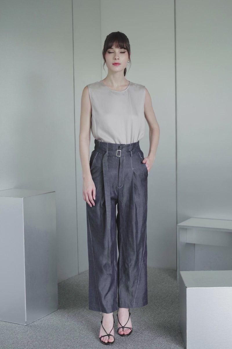 Essentials this cool are hard to come by. Tailored from denim fabric, our Buckle Straight Leg Denim Pants have a straight-cut silhouette with a built-in, belted waistband. The refinement of its cuts, the play on textures, and the sleek leather strap detail on the back make it easy to dress up or down. Style yours with a crisp white shirt and beautiful flats.