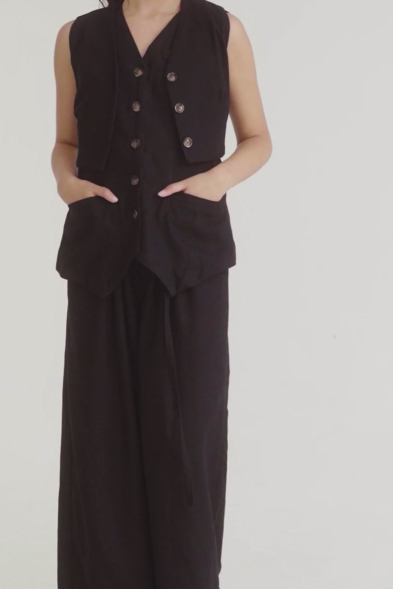Tailored vests are having a moment right now, and what better way to embrace the look than by experimenting with not just one, but two vests! One cropped and the other boasting a slightly more relaxed silhouette, our Button Natural Vest Set is cut from a blend of cotton and recycled polyester with touches of breathable linen. Wear it alone as a top, layered as you wish or as part of a three-piece suit; it looks chic from every angle.