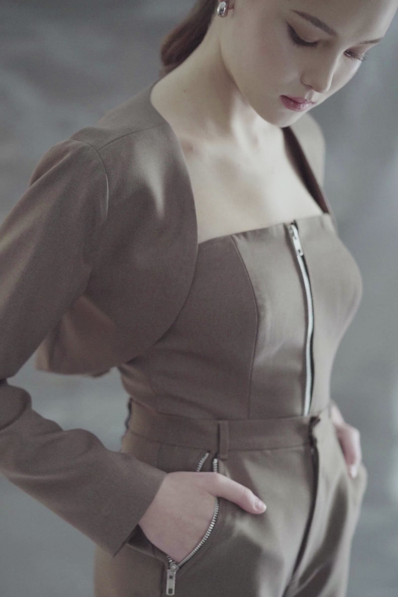 A crop outer is a truly functional piece. It’s great for keeping your arms warm when the temperature drops but doesn’t ruin your outfit in the way a bulky jacket can. Tailored from polyester stretch fabric and designed with a cropped streamlined cut, our Crop Outer proves that functionality can look all the more stylish and chic. Slip yours on over our Zipper Tube top for a coordinating look or even a plain white tank for a contrasting look.