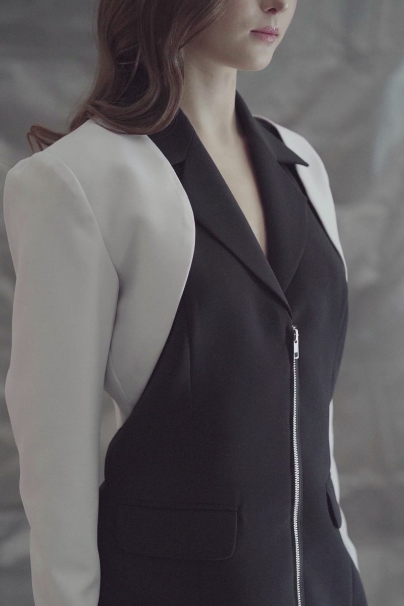A crop outer is a truly functional piece. It’s great for keeping your arms warm when the temperature drops but doesn’t ruin your outfit in the way a bulky jacket can. Tailored from polyester stretch fabric and designed with a cropped streamlined cut, our Crop Outer proves that functionality can look all the more stylish and chic. Slip yours on over our Zipper Tube top for a coordinating look or even a plain white tank for a contrasting look.