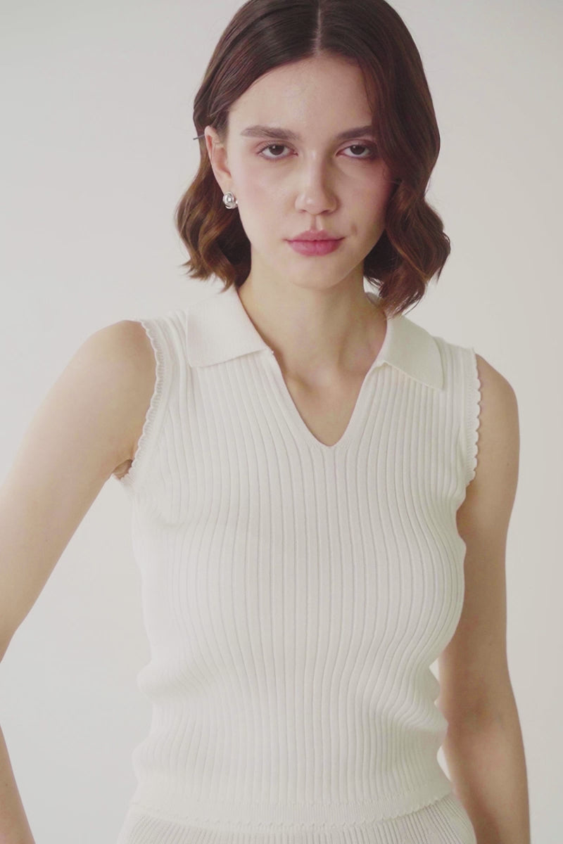 Essential Rib-Knit Cotton Polo Vest In Ivory