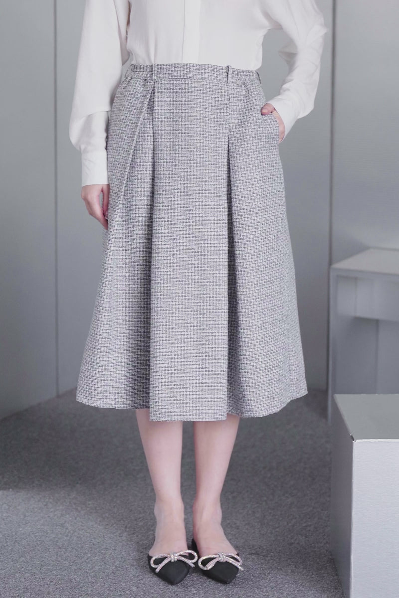 With a focus on sumptuous textiles and neutral hues, Onycha excels in crafting covetable wardrobe staples to cherish season after season. Our Pleated Tweed Midi Skirt is one of them. Crafted from tweed fabric, this classic tailored piece boasts a pleated design that ends at a midi hem. Style yours with a classic pair of heels for work or a statement top for the evening.