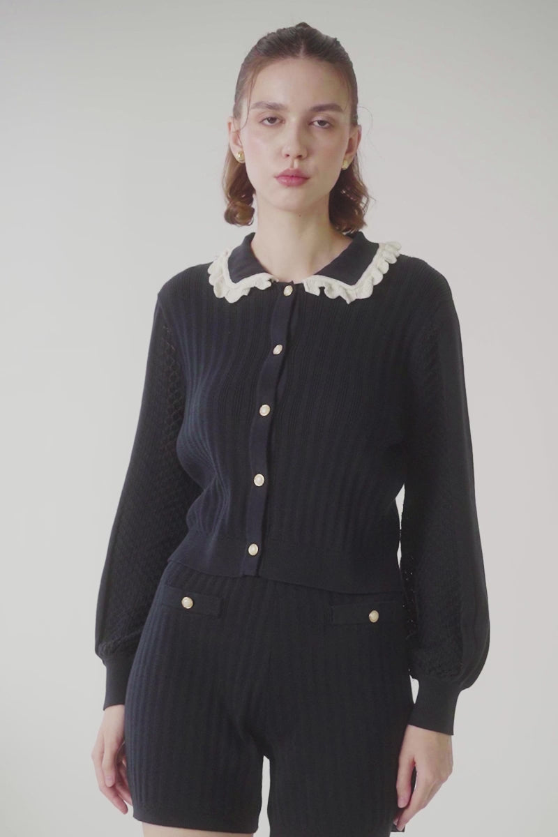 Onycha’s Rib-Knit Shorts will add an elegant touch to your everyday wardrobe. Cut from 100% rib-knit cotton, they’re designed with an elasticated high-rise waistband that sits high on the waist and is adorned with pearl-buttoned pockets. Complete the set with our matching Lace-Knit Collared Rib-Knit Cardigan.
