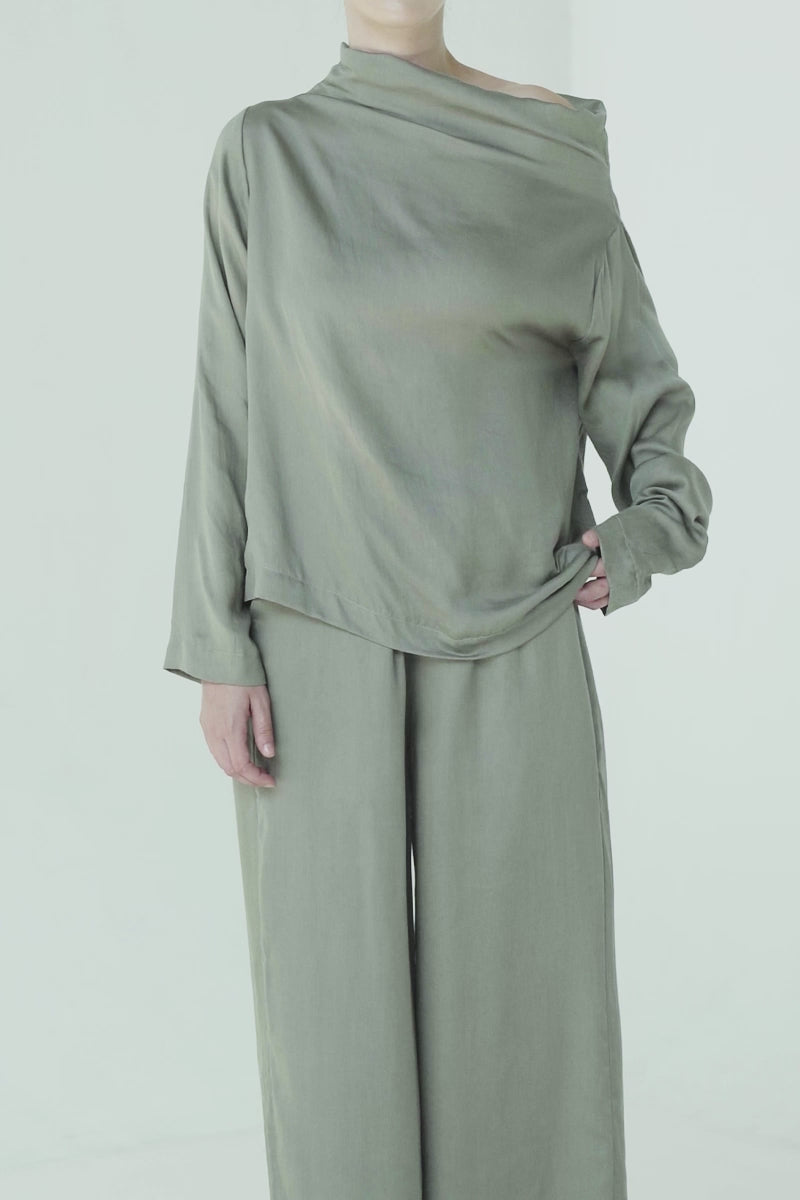 Sateen Off-Shoulder Top In Forest Sage