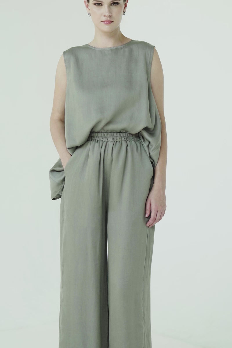 Sateen Straight Leg Pants In Forest Sage