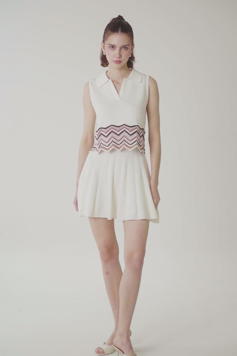 Zig-Zag Trimmed Polo Vest In Ivory