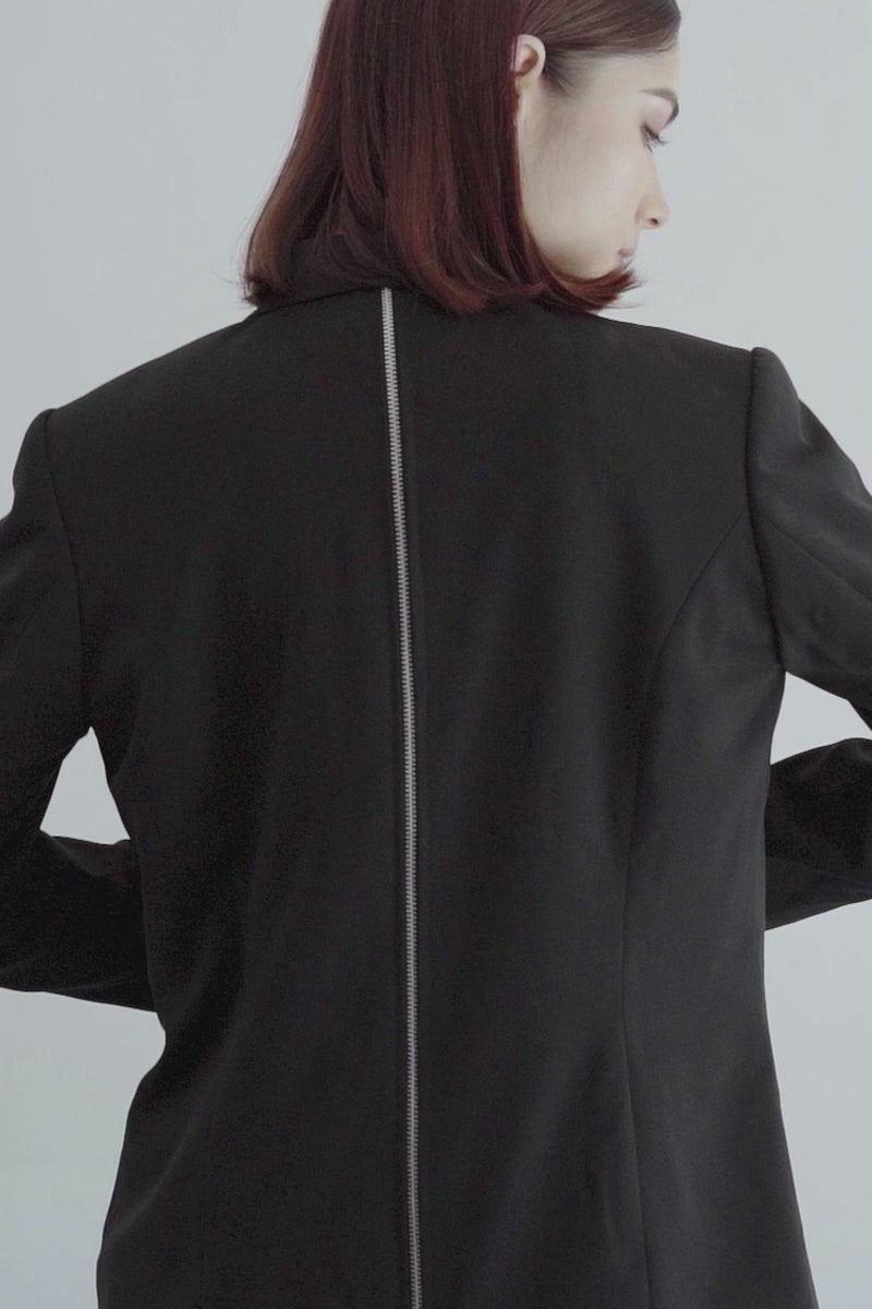 Tailored from stretchy polyester fabric, our Zipper Back Blazer has a beautiful drape and soft feel to it. The padded shoulders give it a subtle structure, while the zipper opening at the back lends a boxy silhouette at the front and a perfect dose of wow factor at the back. Available in classic hues that'll look just as good with coordinating pants as it will with a pair of jeans.