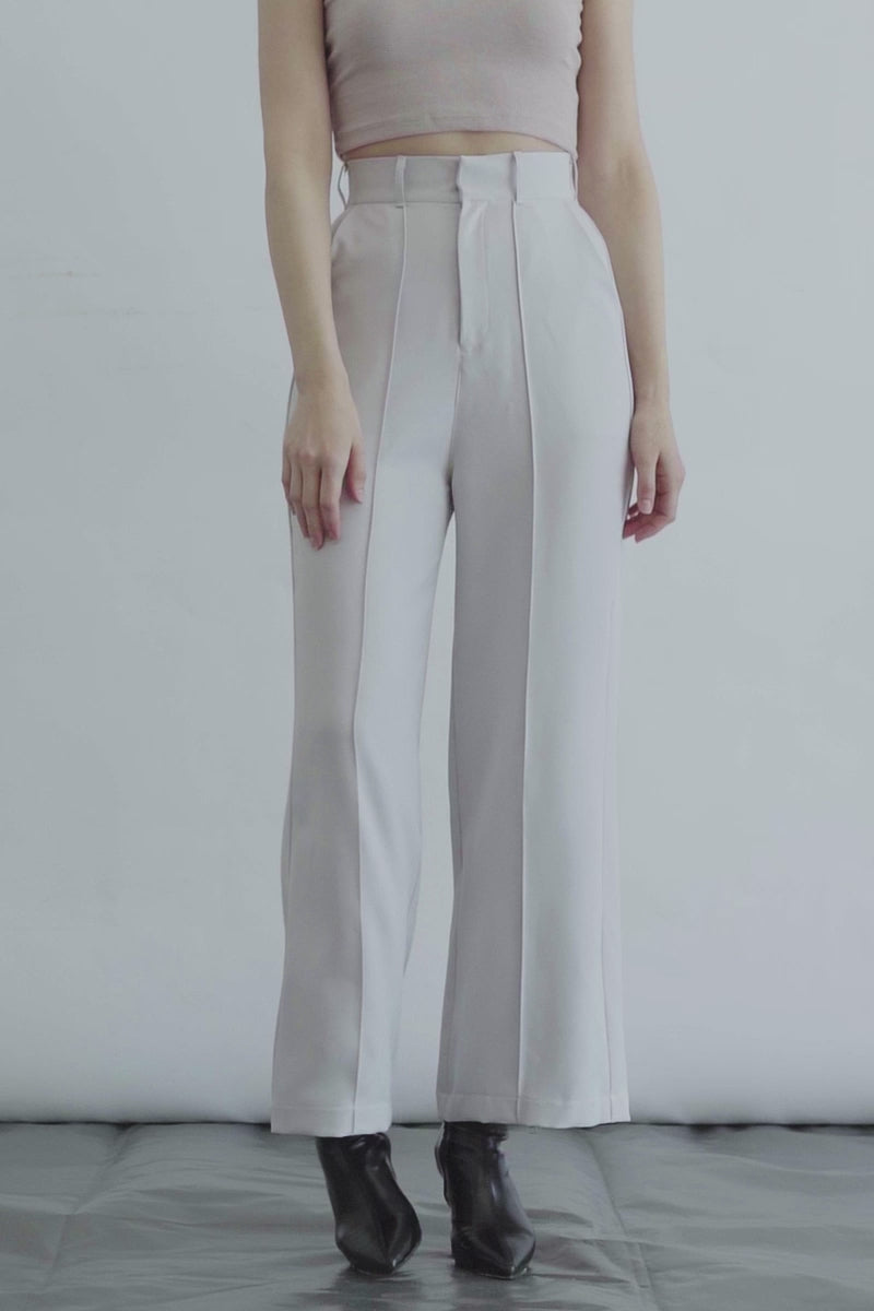Our Zipper Back Pants have a streamlined design enhanced by the hidden fastening and elongating pressed creases. Made from stretchy polyester fabric, they sit high on the waist and fall to straight legs. The straight cuffs that zip open from the knee down allow more movement and are perfect to be worn over boots.