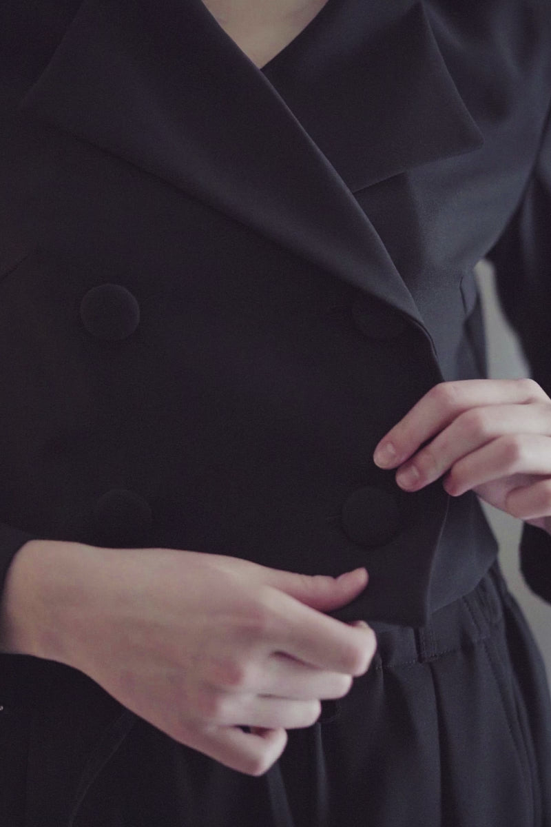 Onycha's Zipper Crop Jacket is a contemporary take on classic tailoring. Made from polyester stretch fabric in a slightly loose double-breasted design, it's trimmed with a silver zipper detail on each sleeve that highlights the sharp cut of its traditional tailoring technique. Harmonize the sleek lines with our matching Baggy Pants or create an unexpected contrast with our Zipper Skort.