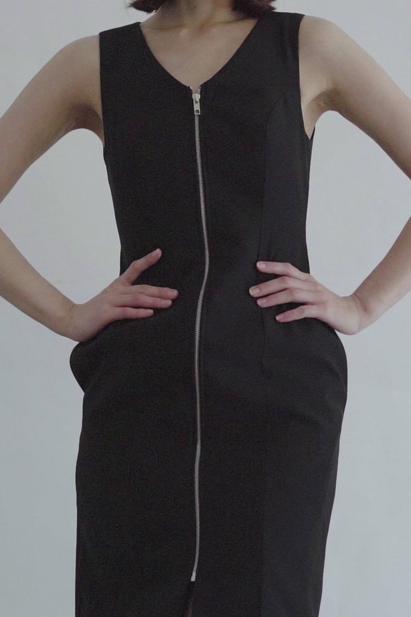 With a focus on exceptional fabrics, impeccable details, and uncompromising quality, our Zipper Fitted Dress explores the strength of simplistic shapes, resulting in timeless staples with subtle irreverence. The exposed zipper detail was strategically placed front and center, adding interest to this V-neck sleeveless number with a cool flash of metal down the middle.