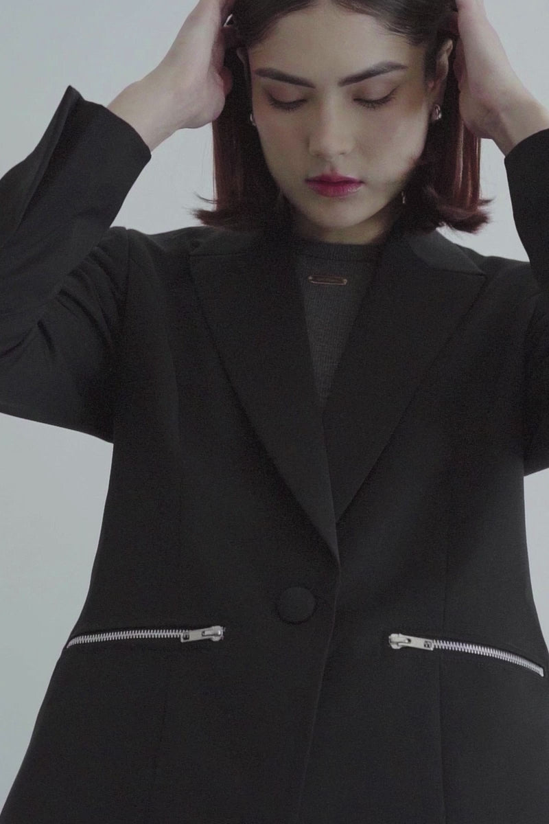 Fusing exceptional craftsmanship with fresh details became Onycha's focus in creating this sophisticated yet cool tailoring piece. Designed in a classic single-breasted silhouette and has notch lapels and streamlining darting, this classic blazer works nicely with everything. The zipper oversized details add a touch of utilitarian to any modern women's wardrobe.