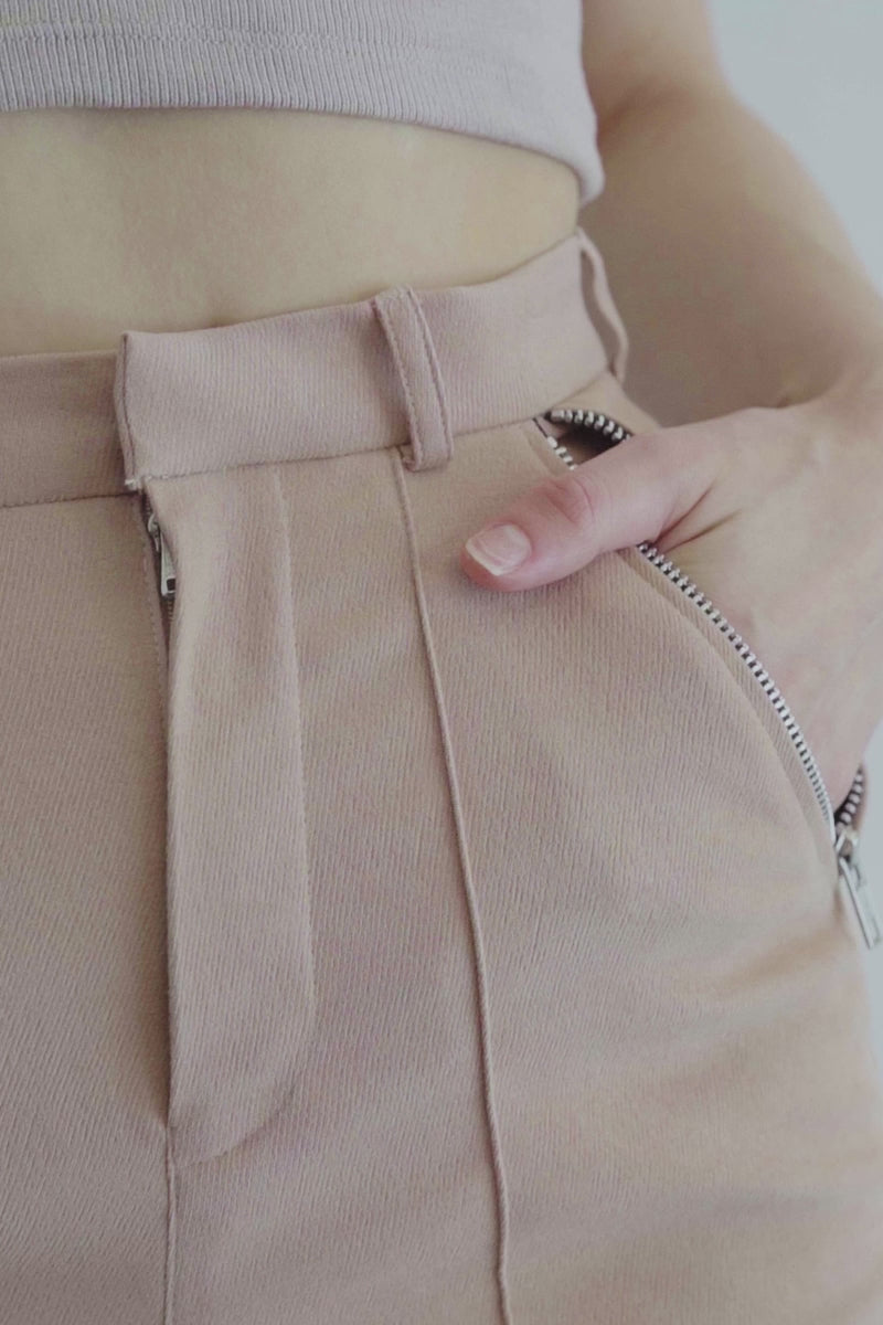 Zipper Slim Pants In Camel